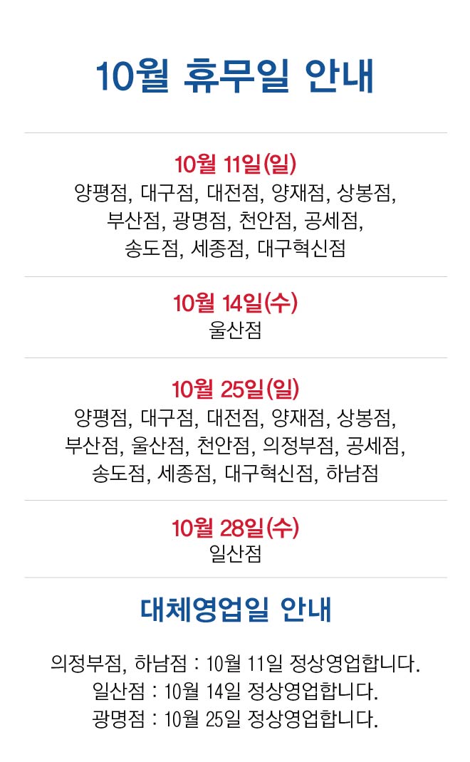 광명점:10월 25일 정상영업.